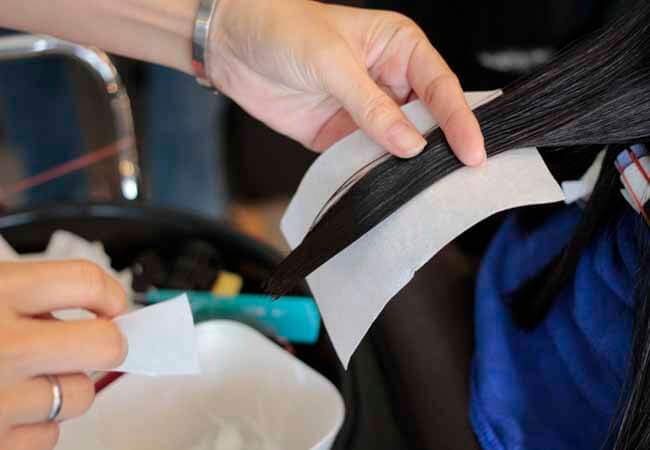 - パーマ⇒パーマ液の塗布、ワインディング(ロット巻き)