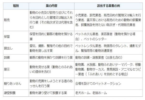 2.1 第一種動物取扱業の種別区分と登録申請